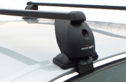 Багажник на крышу  автомобиля, упоры BU1с пластиковыми замками. Универсальный багажник со стальными поперечинами (118см, 32х22мм) прямоугольного сечения.  Упоры BU1 крепятся монтажными крючками (из монтажных комплеков (FK01-FK219)) за арки дверей автомобиля в определенных местах в в соответствии с инструкцией. При необходимости возможно заменить пластиковые замки на металлические (№501) за доплату.